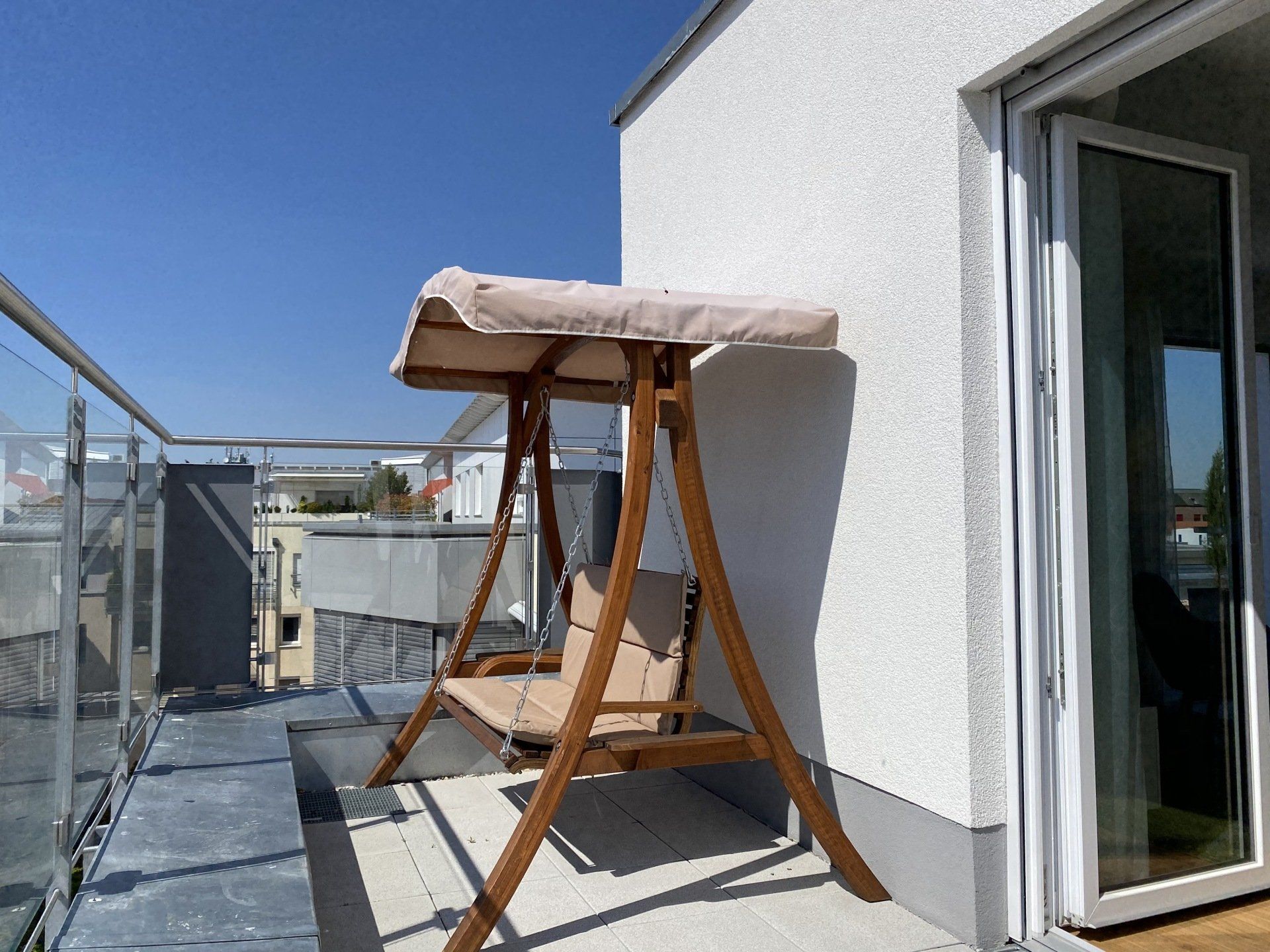 Hollywoodschaukel, mehrere Sitzmöglichkeiten im freien, Balkon und Terrasse, großer/kleiner Sonnenschirm